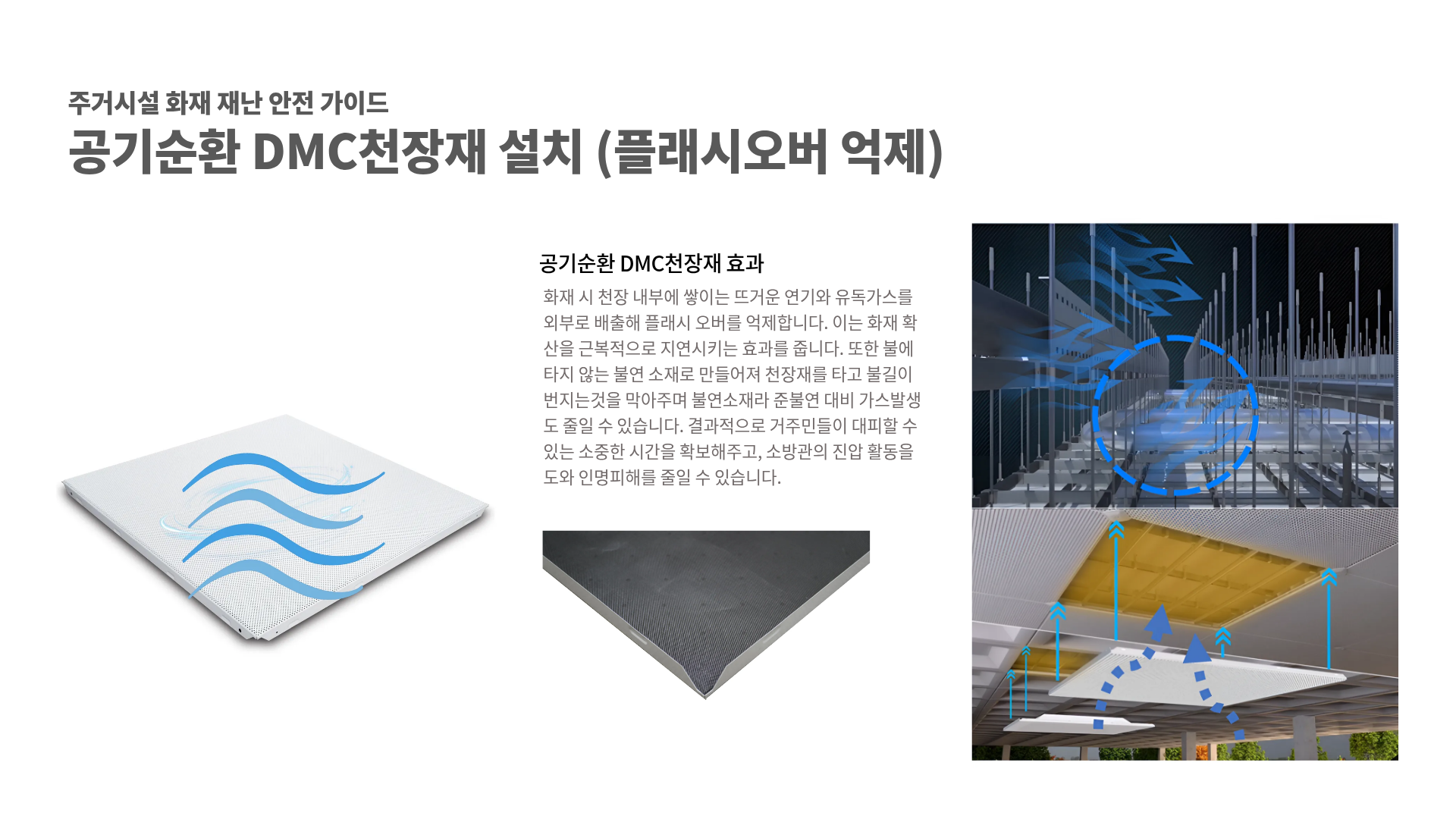 공기순환 DMC천장재 구성 및 설치 (플래시오버 방지용)