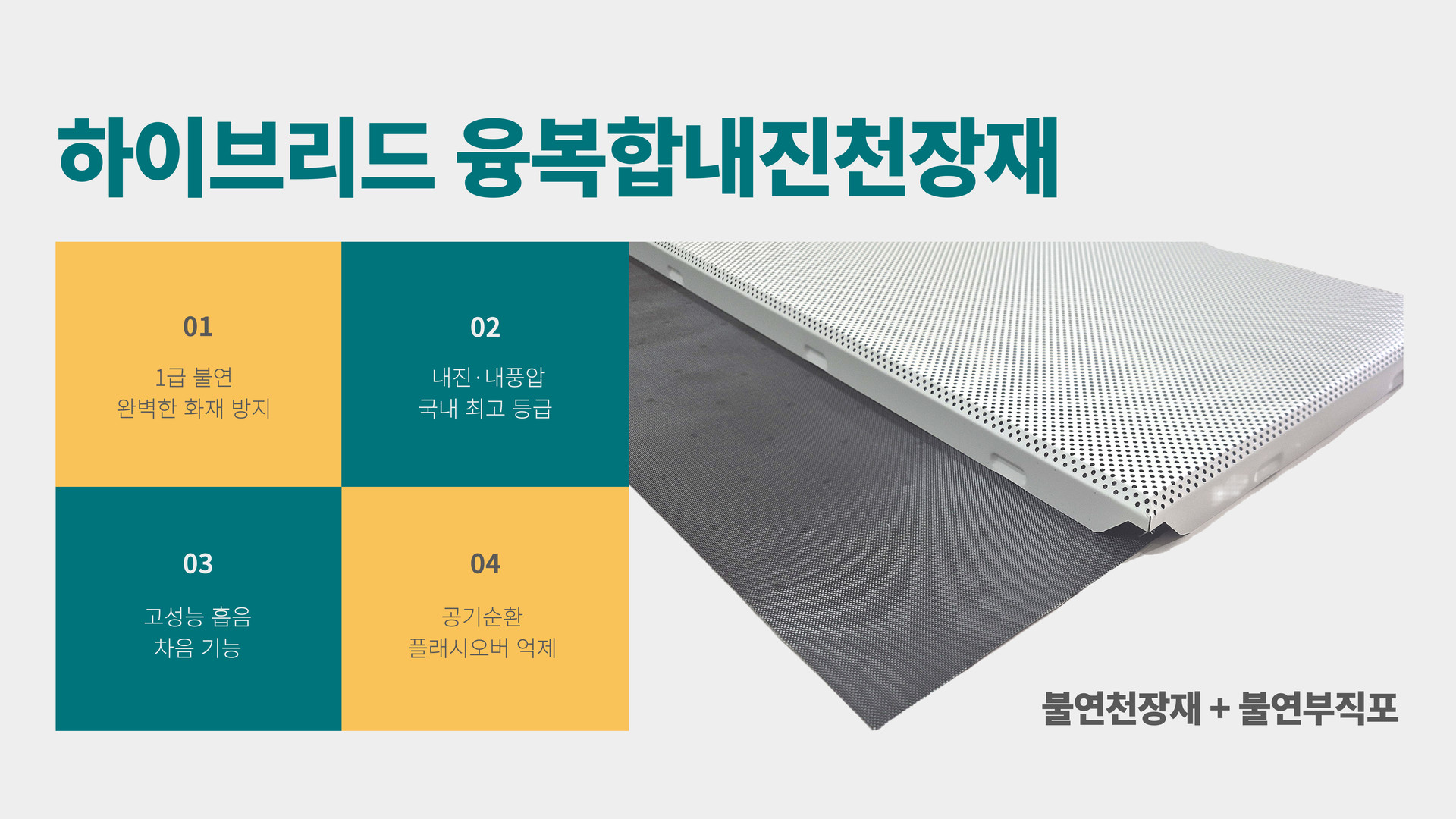 젠픽스만의 완벽한 기술로 1급 불연 하이브리드 융복합금속천장재 개발