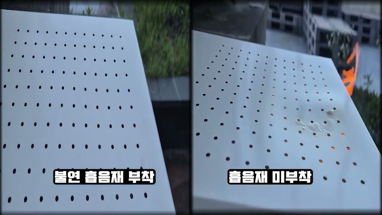 타공 금속 천장재 차음 효과는 부직포의 부착 여부에 따라 달라집니다.