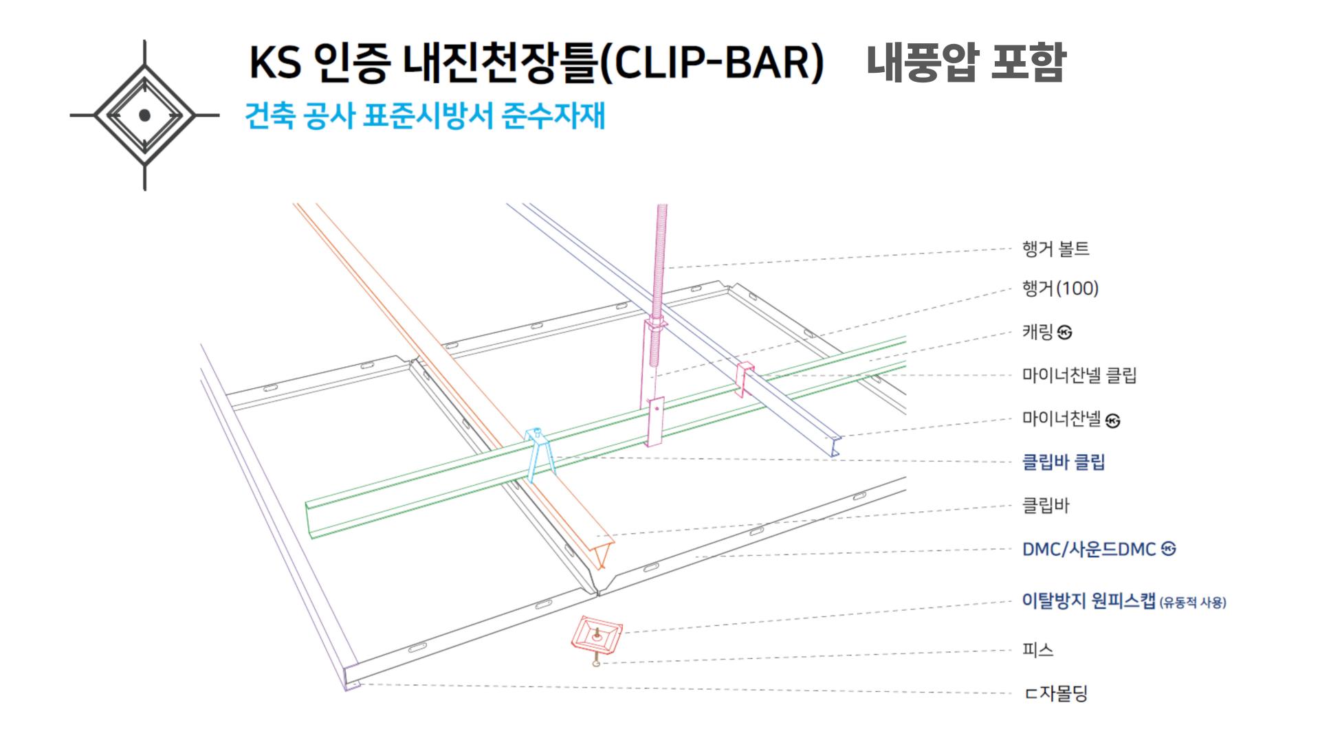 구분 | KS SDMC 내진 천장시스템 | 비표준 특허 제품(A사, B사, C사) |
